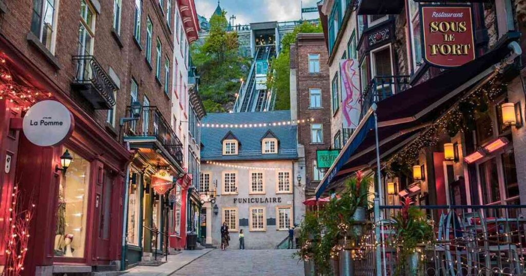 Walking through Old Quebec (Vieux-Québec) feels like stepping back in time. The cobblestone streets, centuries-old stone buildings, and historic landmarks give the city a European charm rarely seen in North America. From the majestic Fairmont Le Château Frontenac towering over the Saint Lawrence River to the quaint streets of Petit-Champlain, the city blends history, culture, and scenic beauty.