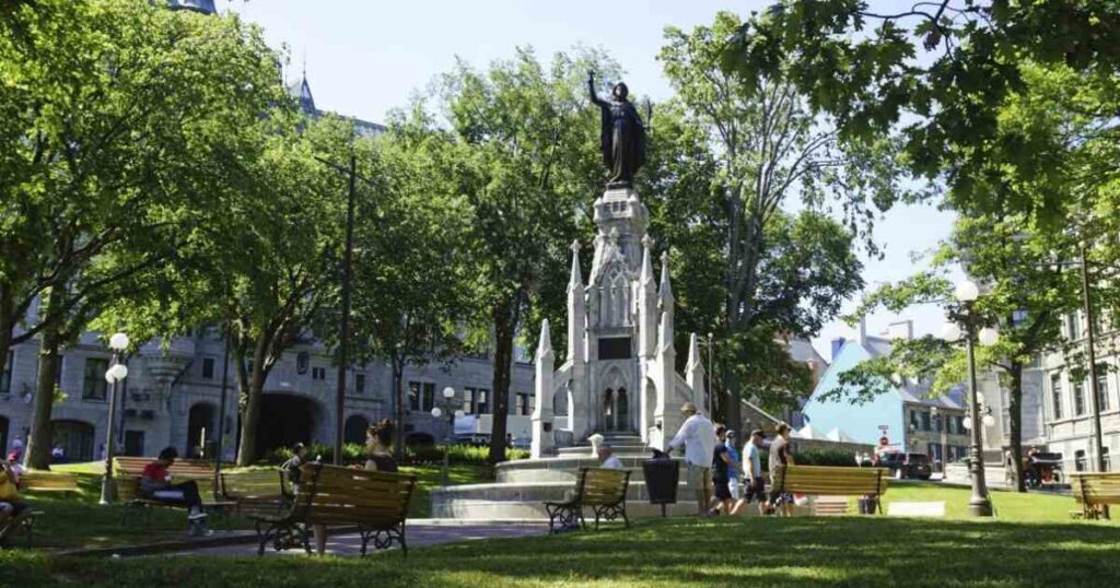 Place d’Armes is a historic square located in Upper Quebec, right across from the charming, café-lined Rue Saint-Anne. This picturesque park serves as a cultural hub where visitors can enjoy the city’s lively atmosphere, relax on benches, or watch local street performers.